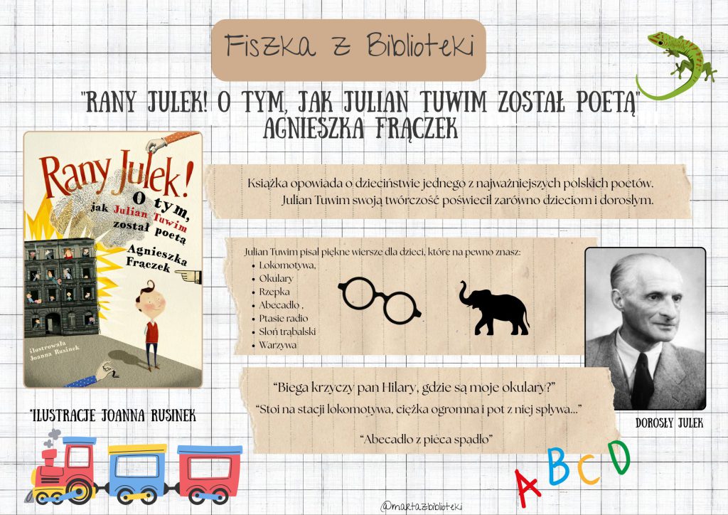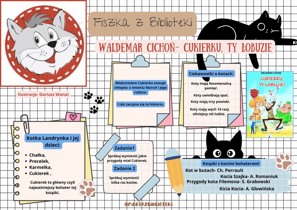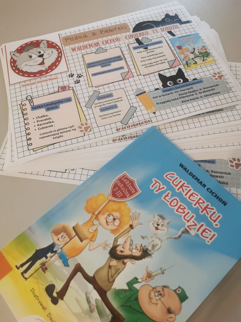 Fiszka z biblioteki to nowy mini projekt. To krótka, inspirująca, pełna ciekawostek notatka o lekturze, która może być świetnym dodatkiem podczas omawiania. Są w niej ciekawostki, kilka informacji i zadania. Fiszki tworzę na życzenie wychowawców i bibliotekarzy. W zależności jaką lekturę dzieci poznają. Poniżej kilka przykładów: